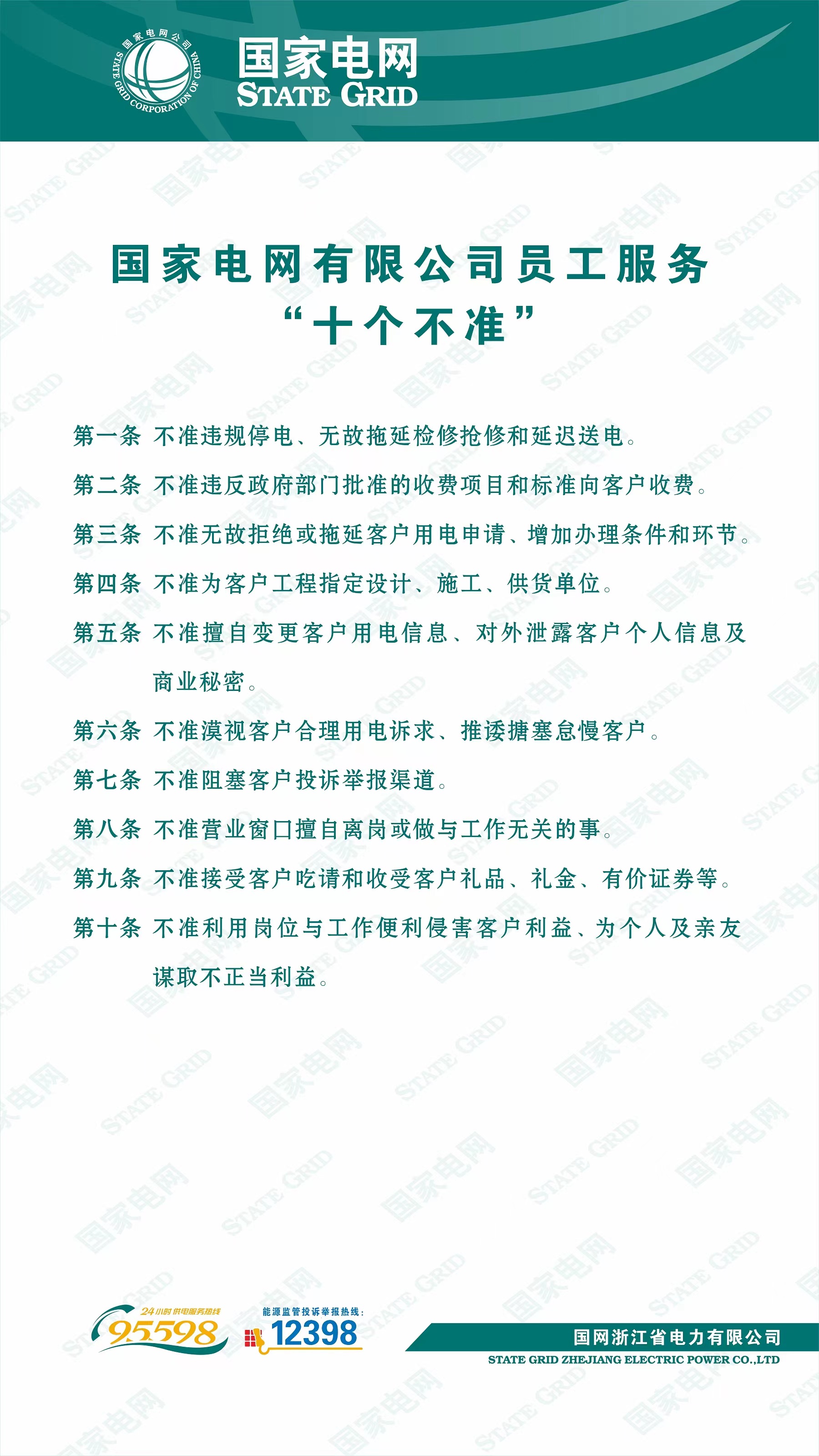 国家电网有限公司员工服务“十个不准”