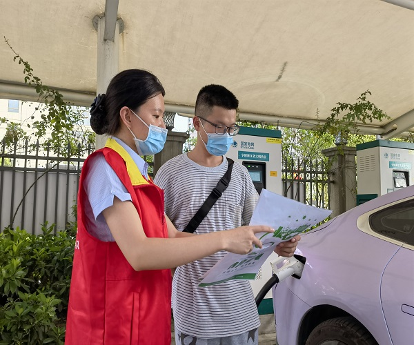 弘扬新风尚,做社会宣传引导者。“您好,近期持续高温,在家少开长明灯,合理设置空调温度,减少空调使用时间和频次,不使用电器时彻底关闭电源,减少待机耗电。”在虹桥供电所门口和营业大厅,心悦岗的员工对前来办理业务的客户和正在充电桩充电的新能源车车主宣传节约用电、鼓励用户错避峰充电,配合地方政府加强企业节能宣传,并利用微信朋友圈、微信群,积极转发宣传节约用电倡议书和短视频,同时走进企业社区倡导大家节约用电。