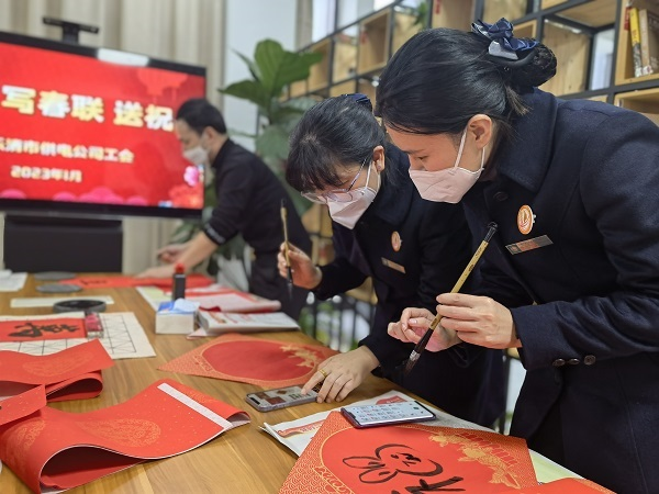 为迎接兔年春节的到来,弘扬中华优秀传统文化,传递美好祝福和关爱,进一步增强员工凝聚力,营造欢乐祥和的节日氛围,1月13日,虹桥供电所分工会在悦电小家组织开展了“迎新春 写春联 送祝福”活动。