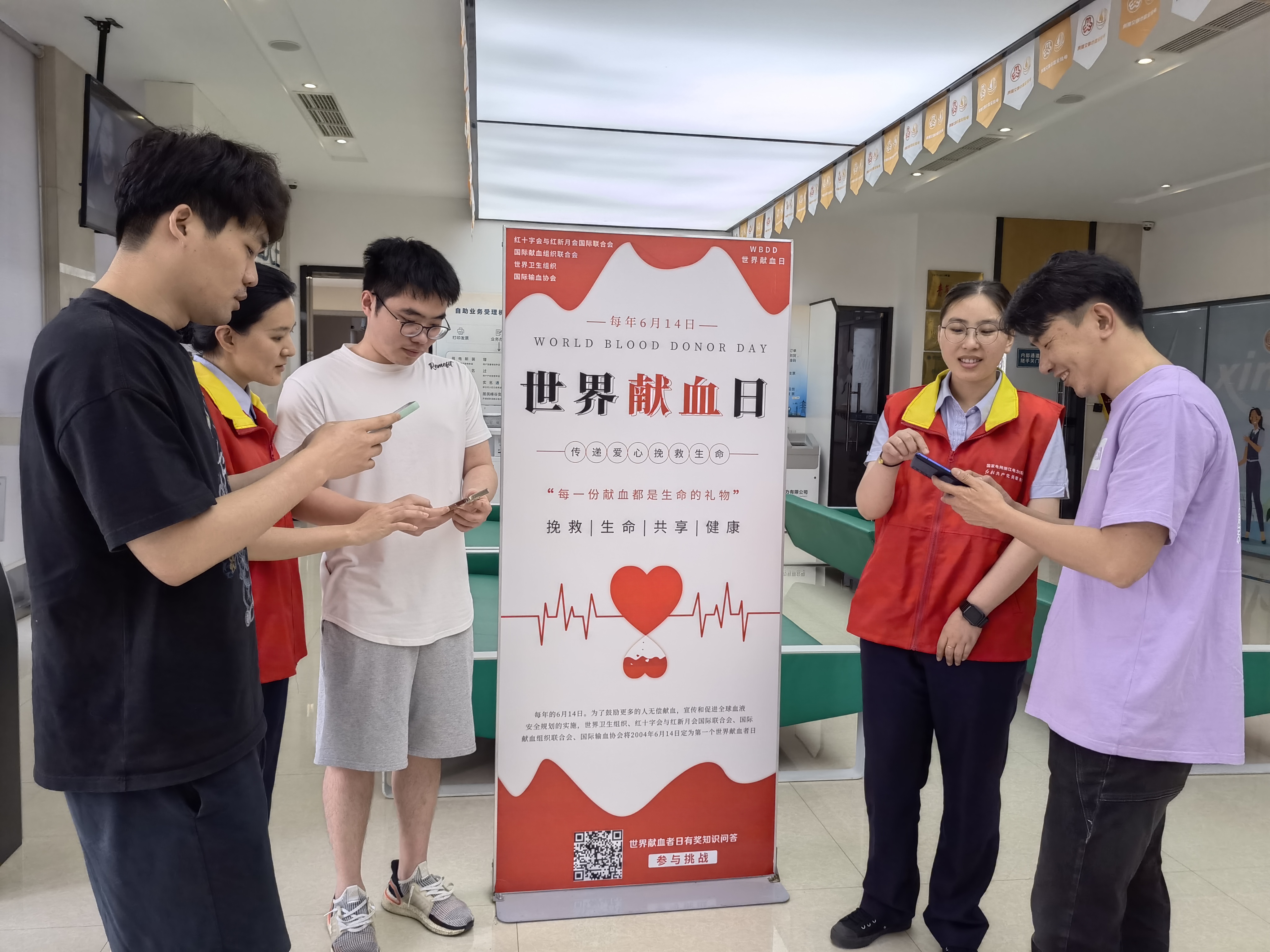 在此次世界献血者日活动期间,“心悦岗”巾帼志愿者积极宣传无偿献血知识,并引导已办结用电业务的用户刷二维码参与世界献血者日有奖知识问答。参与者在收获知识的同时也得到一份精美小礼品。